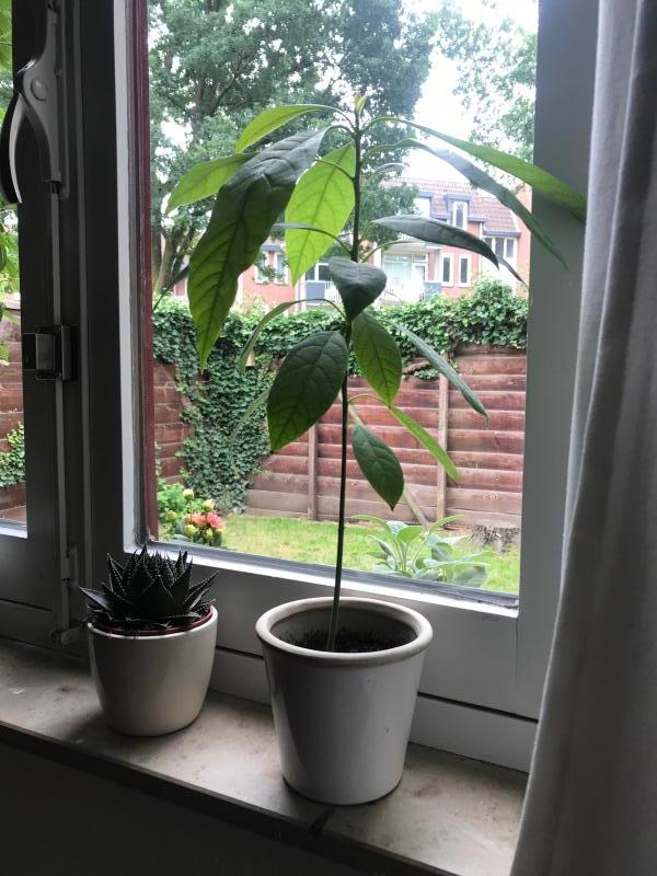 Mijn avocado plantje is nu een jaartje oud en 40 cm hoog. Tot nu toe heeft ie altijd weinig verzorging nodig gehad; lichte standplaats en een beetje water. De laatste weken zijn er veel bladeren bijgekomen en ziet ie er goed uit. Ik vind echter dat de stam een beetje scheef staat en ik vraag me af of de bladeren niet te zwaar worden. Wat is de volgende stap? Verpotten en/of snoeien? Hoe kan ik het plantje het beste snoeien?